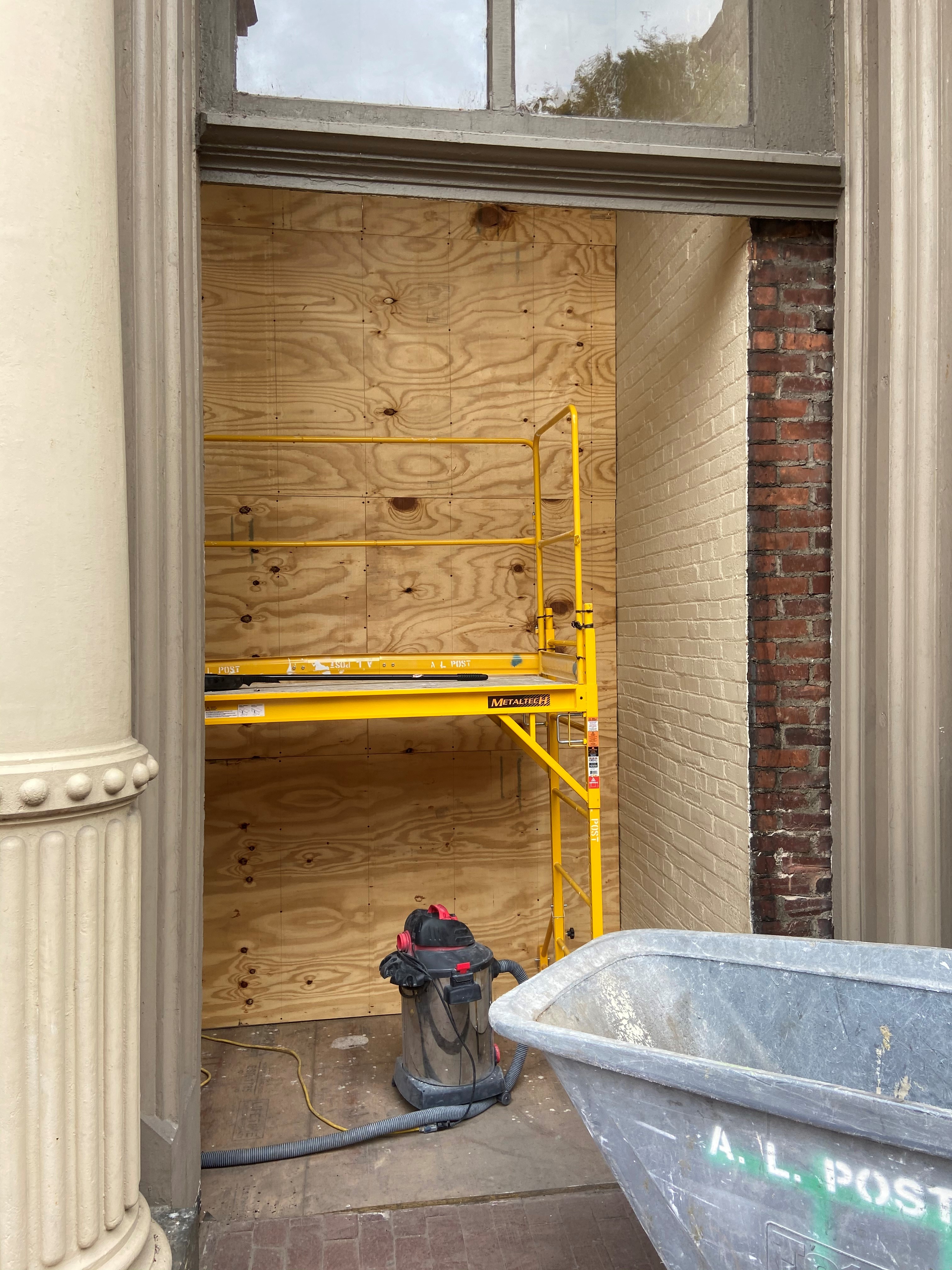 The facade restoration project has officially kicked off! Bright and early on October 26th, 2020 the work crew began the project. Executive Director Don Shaw snapped a few pictures to help document the progress.